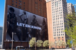 體育資訊4月18日訊 今日,ESPN克利夫蘭分臺官推曬出一張照片,展現騎士主場附近建筑上為迎接季后賽而懸掛的全新巨幅海報。