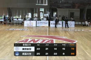 末節之爭楊文靜率先拿分,隨后王佳穎外線開火命中三分,進攻端南京航空稍占上風但也沒能追回太多分差,南昌大學這邊李嘉琪延續手感繼續命中三分,球隊一直維持10分上下的領先掌控比賽。最終,南昌大學84-72擊敗南京航空航天大學拿下比賽。