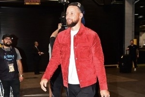 賽前,勇士球星庫里入場時上腳了對方主將布克的戰靴,他所穿的是布克2024年“奧運系列”配色的Book 1戰靴。