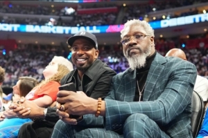 本場比賽,活塞名宿漢密爾頓和本·華萊士也在現(xiàn)場看球。