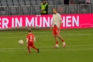 幸福時刻!拜仁提前鎖定德甲冠軍后,凱恩和兒子一起在球場踢球
