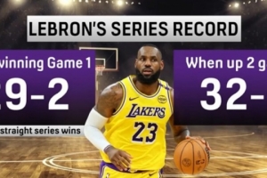 明日G2關鍵一戰!當領先2場時 詹姆斯季后賽生涯系列賽32勝0負